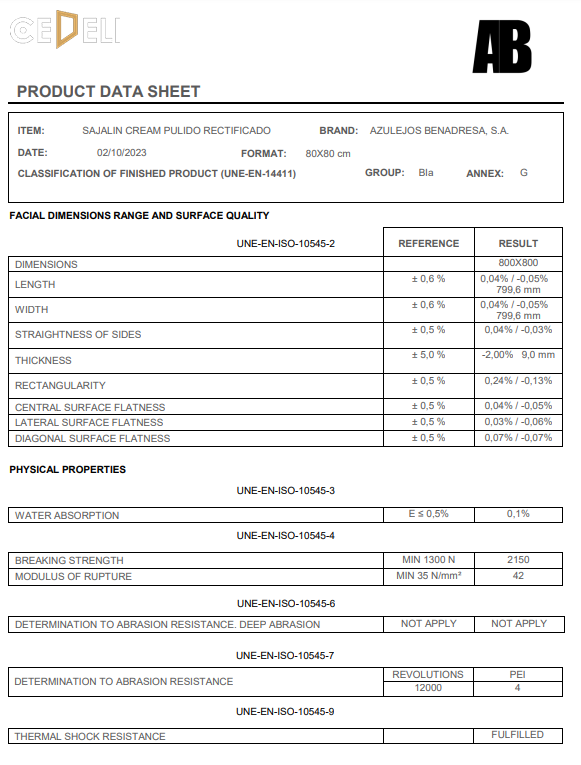 THÔNG SỐ KỸ THUẬT CỦA GẠCH NHẬP KHẨU CAO CẤP Sajalin Cream