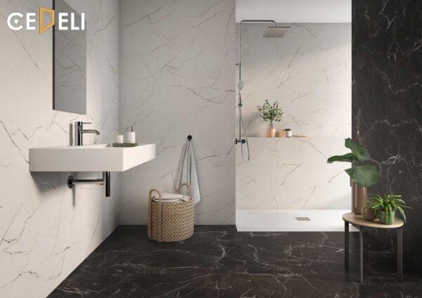 - Nhiệt độ nung của gạch porcelain lên tới 1220 độ C, cao hơn cả nhiệt độ nung của gạch granite (chỉ lên tới 1200 độ C) giúp gạch ốp lát LM Venato Black MC chịu được các lực tác động lớn, hạn chế tình trạng nút nổ vỡ hoặc trầy xước sau thời gian dài sử dụng