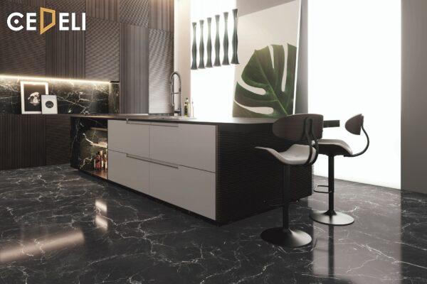 Mang đến nguồn năng lượng mới mẻ nhờ những nét vân mây tinh tế, nổi bật trên nền gạch màu đen chính là ưu thế của dòng gạch vân mây đen. Đối với mẫu gạch ốp lát này, sẽ rất phù hợp đối với đồ nội thất có tông màu tương phản, nhằm mang tới sự thu hút đặc trưng. Dòng gạch này cũng sẽ phù hợp để chọn các mẫu gạch khổ lớn và lát nền trong các không gian có diện tích lớn vì sẽ mang tới 1 mặt phẳng thu hút, nhờ giảm thiểu tối đa mạch vữa có trên mặt sàn.